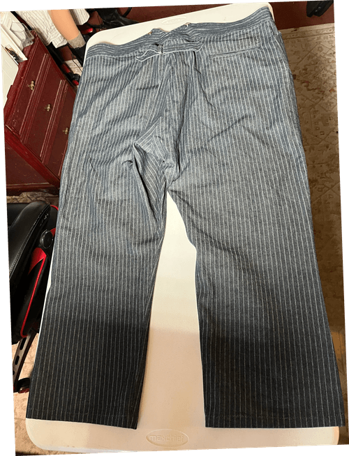 New gunfighter pants. Were ready for selling to SASS Members, then California group disbanded. Note length is fairly short. (Easier to tuck into your gunfighter boots)
