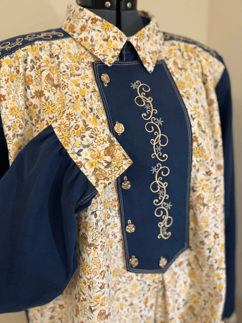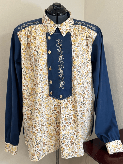 A fancy shirt for a serious man. In the West, they read a man's cards—and his collar. Command respect and turn heads with a shirt as sharp as your wit. It's more than a shirt; it's a statement. Play your hand, and look good doing it. Brought to us from our associated seamstress, Britt Roemmich here in Arizona. Britt is commissioned to take your semi or full custom shirt order. Don't delay, our pricing will most likely be increasing after our introduction of this fancy Gunfighter shirt.