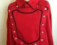 Red with Navy trim. Have 5 shirts in these specific sizes: Small, Medium, Large, XL, and 2XL.