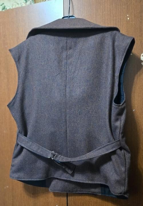 Imitation horn buttons and buckle in the back complete this beautiful piece that will fit perfectly into your impression. Men's size 38 chest.