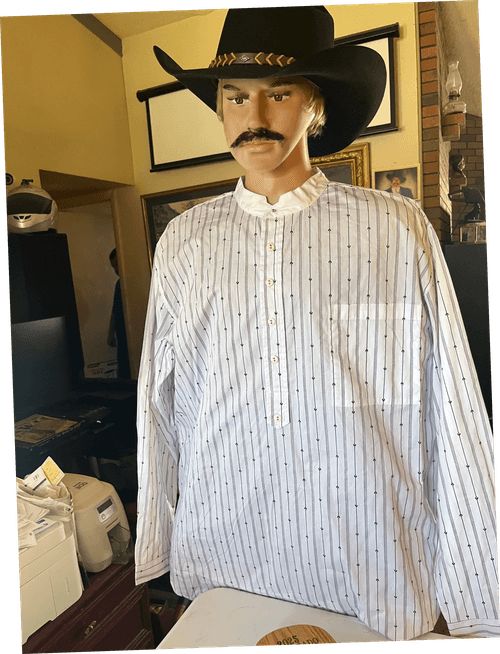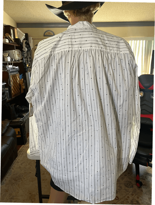 Brand new shirt with tags. Beautiful pattern, white with black accents. The Pinkerton shirt will make your wild west impression rock!