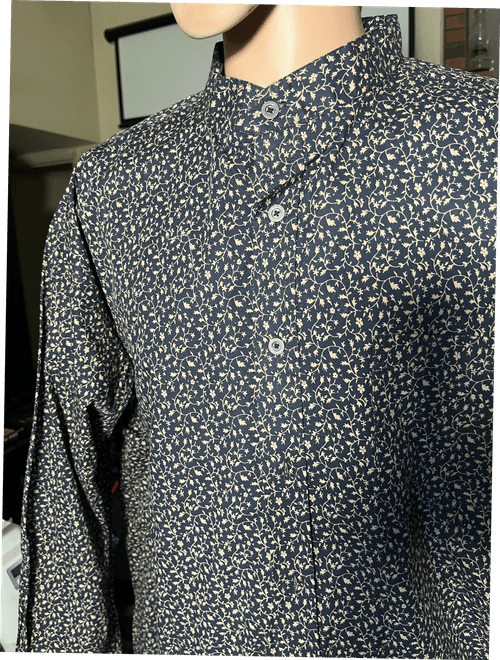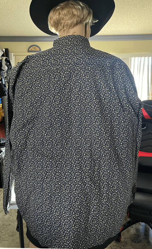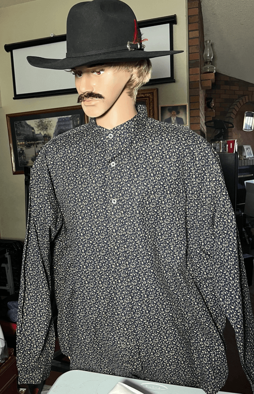 Brand new shirt with tags. Beautiful pattern, navy blue with tan pattern accents. The Pinkerton shirt will make your wild west impression rock!