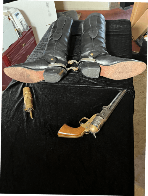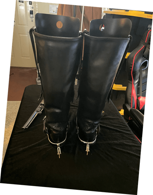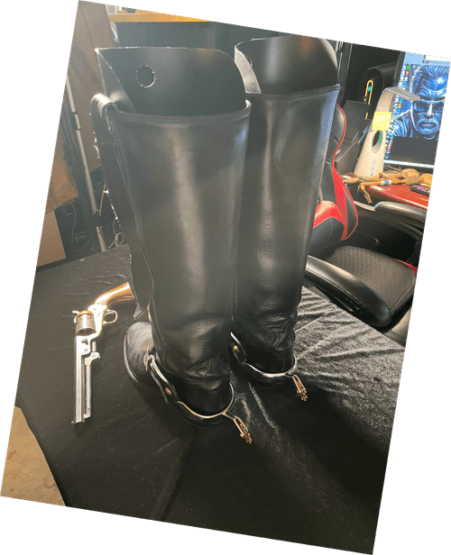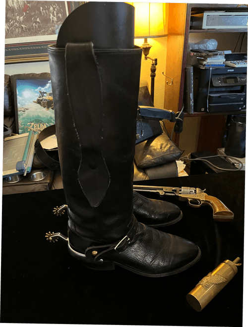 Disclosure: Owner had in storage. WWC&W upon receipt, inserted tight shoe trees (not cowboy boot style trees) included. Then cleaned and oiled the leather with quality Lexol products. The upper toe area had a "curled" condition, as the leather is very high quality and soft. After reconditioning and having tight trees in the boots, this condition has reduced greatly. Spurs/sleeves not included.