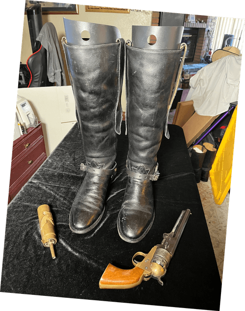 Original Ad: This Dominion Series of Old West Boots is now made for a Cultured Cowboy, and thus, for you, by special make up order. Allow 90 to 120 days for most sizes. This is a great "Shooters Boot". All of the features will complement your SASS or other Western re-enactment hobbies. Originally, the Dominion name came from an "Old Dominion " leather used to make the boots. Today, Tony Lama uses a great cowhide to give an authentic look without needing a week to break it in! Same style, same quality.