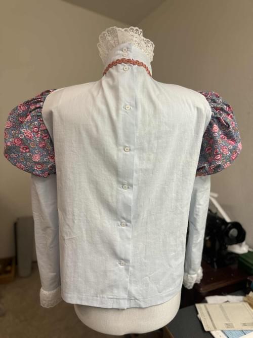 The latest offering for today’s stylish, modern woman. The Parisienne Shirtwaist brings the sophistication of French fashion to every lady’s wardrobe. Constructed from 100% cotton, this exquisite blouse features a high neckline, delicate lace accents, and an elegantly gathered front. Its puffed sleeves are expertly tailored to produce a silhouette that is both graceful and fashion-forward. Perfect for the workplace or afternoon calls, this versatile garment is a testament to refined taste.