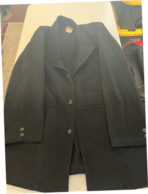 Noting: Black is the hardest color to photograph. Without lighting, it looks "used". With LED lighting rack, it looks "lighter". Trust me, the coat is black, is not dirty. If it fit me, I definitely would buy it myself. I suppose it might photograph better outside with natural lighting. But Arizona has been 100 degrees most days....